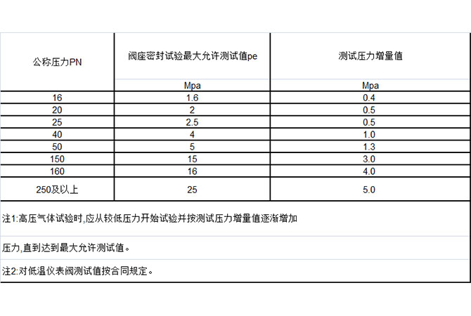 公稱壓力PN閥座密封試驗(yàn)最大允許測(cè)試值peMpa測(cè)試壓力......